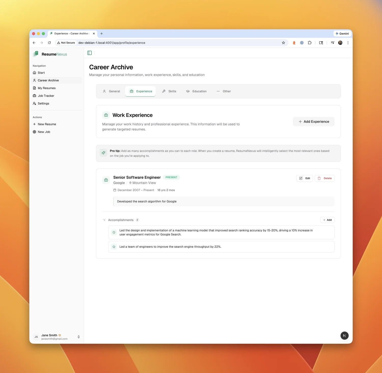 So I built ResumeNexus. Drop in your full experience, paste a job post, and it generates a focused resume. It helped me land my next role.