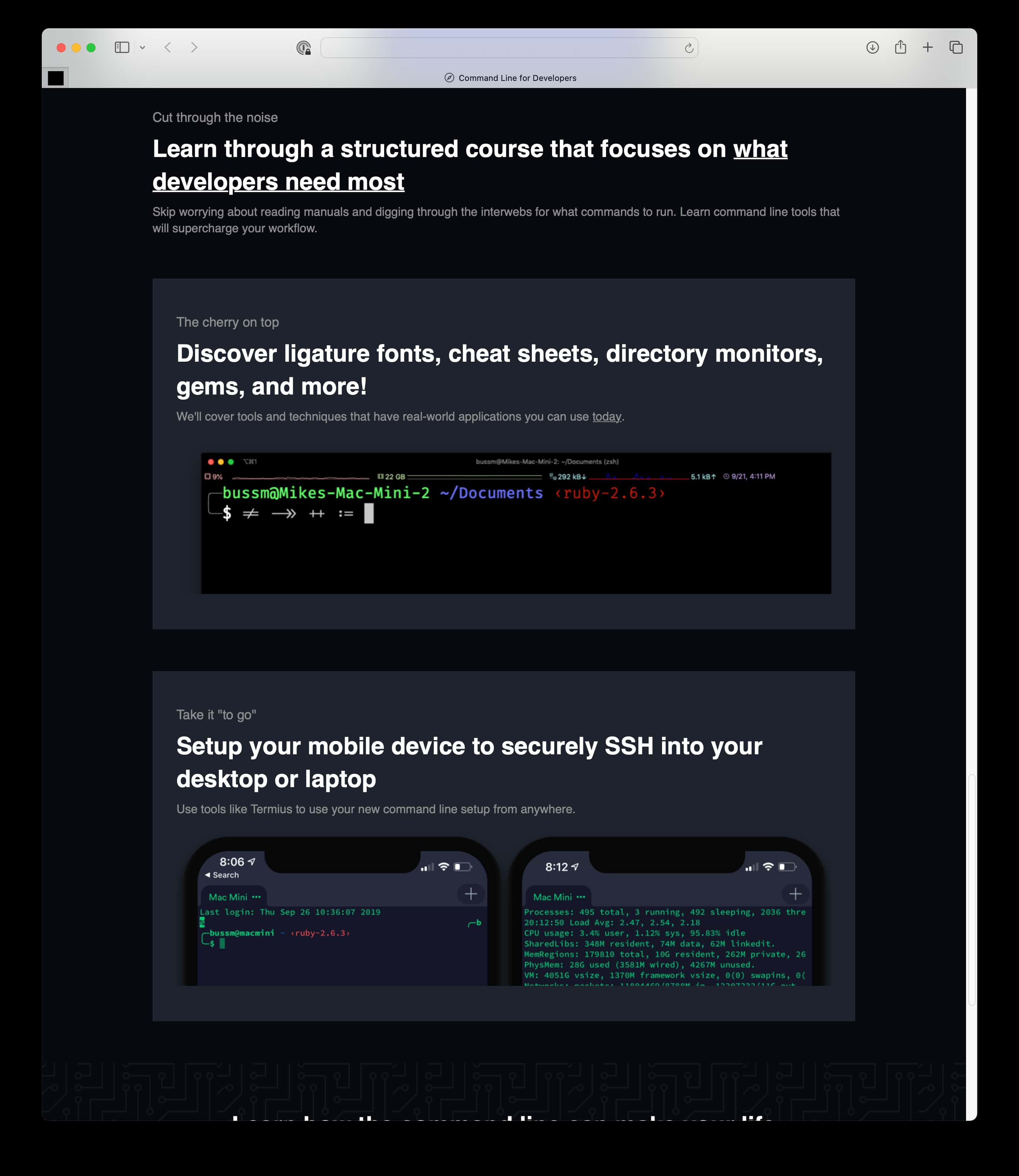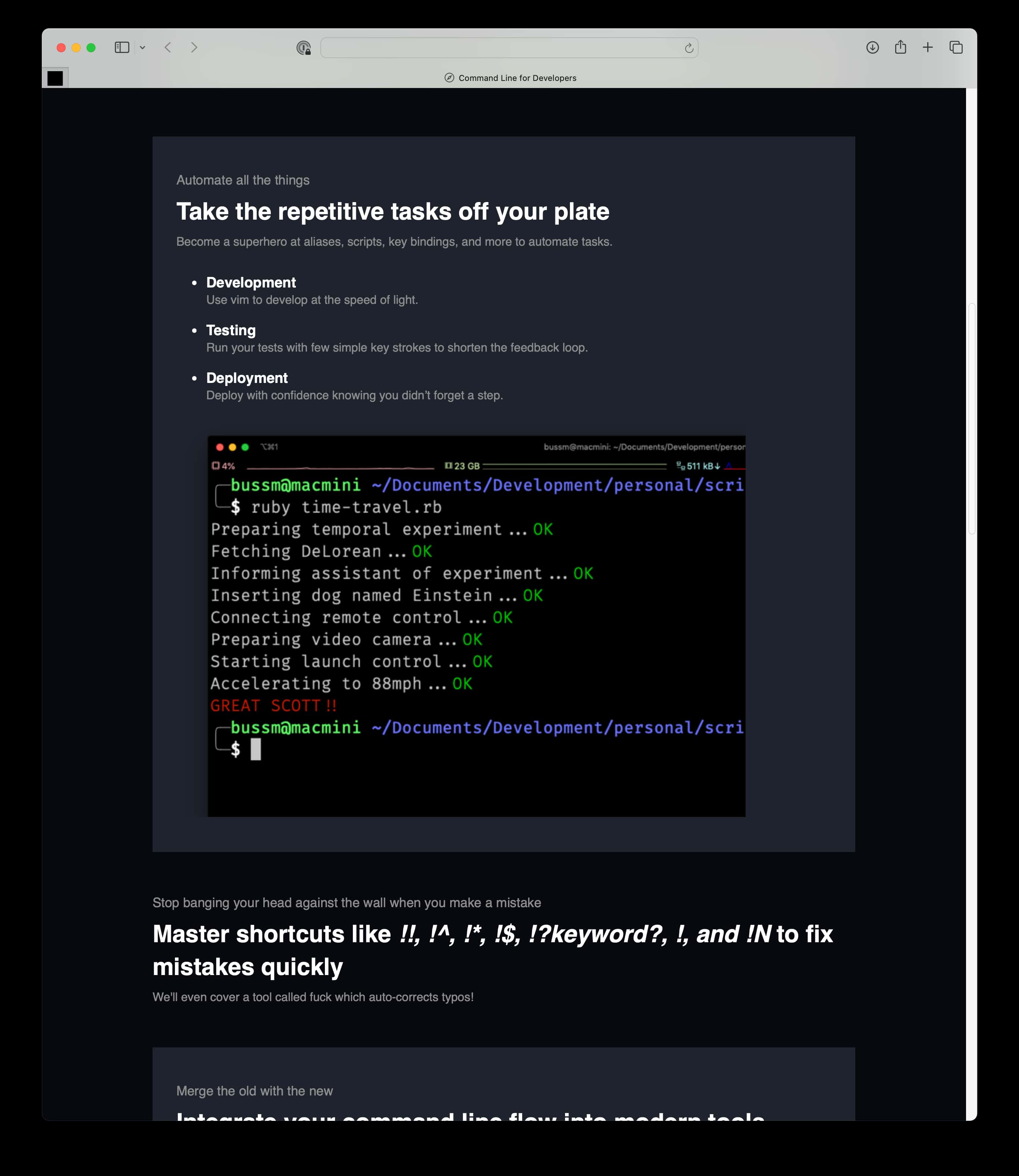 I've been using the command line for over a decade now. It's a powerful tool that can help you automate tasks, manage files, and more. Last year, I started an online course to help developers learn the command line called "Command Line for Developers". The course covers everything from the basics to advanced topics like shell scripting and version control.